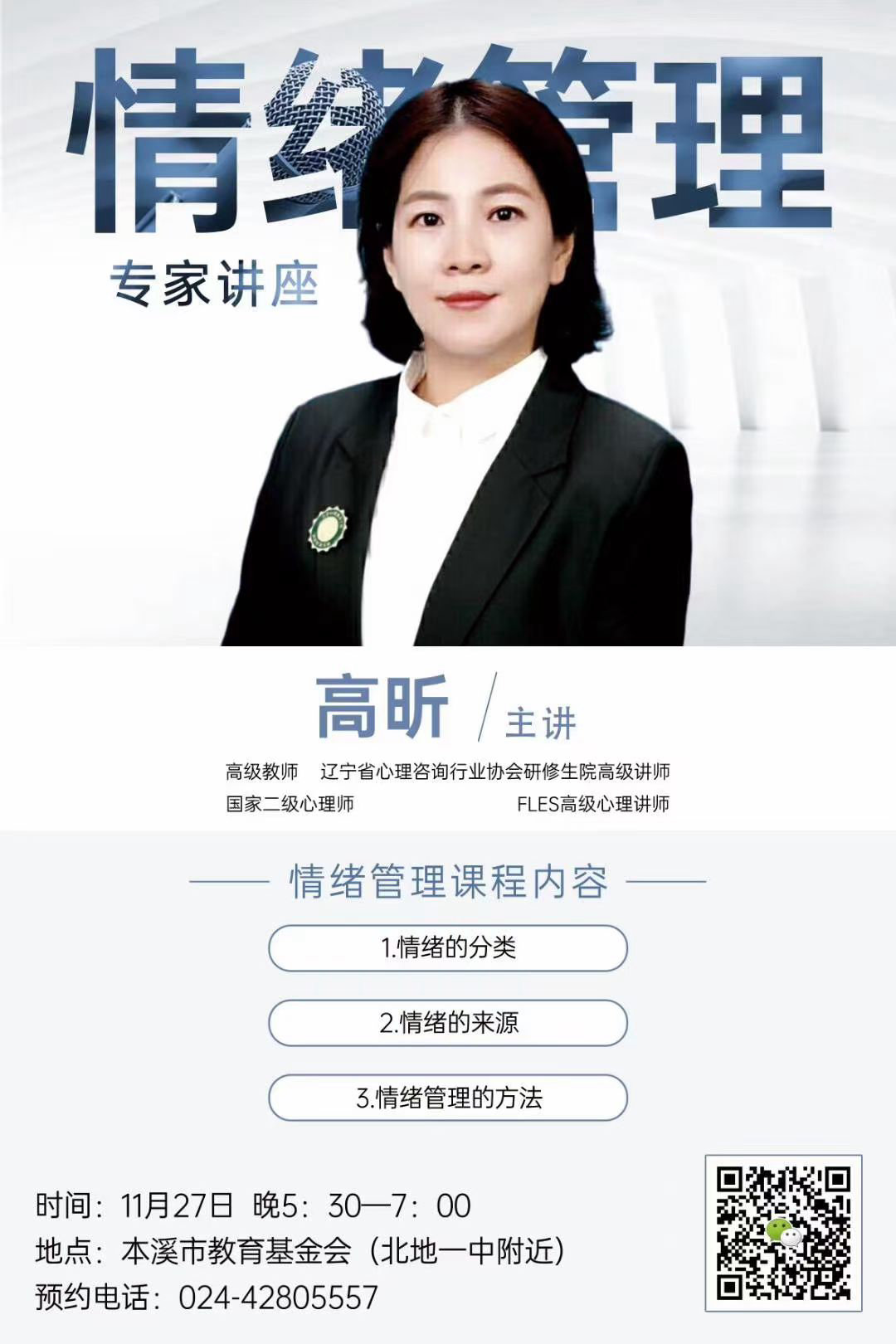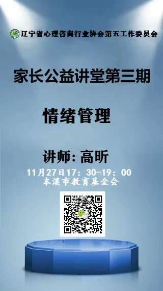 11月27日17时30分 公益讲堂第三期“情绪管理”在本溪市教育基金会会议室开讲