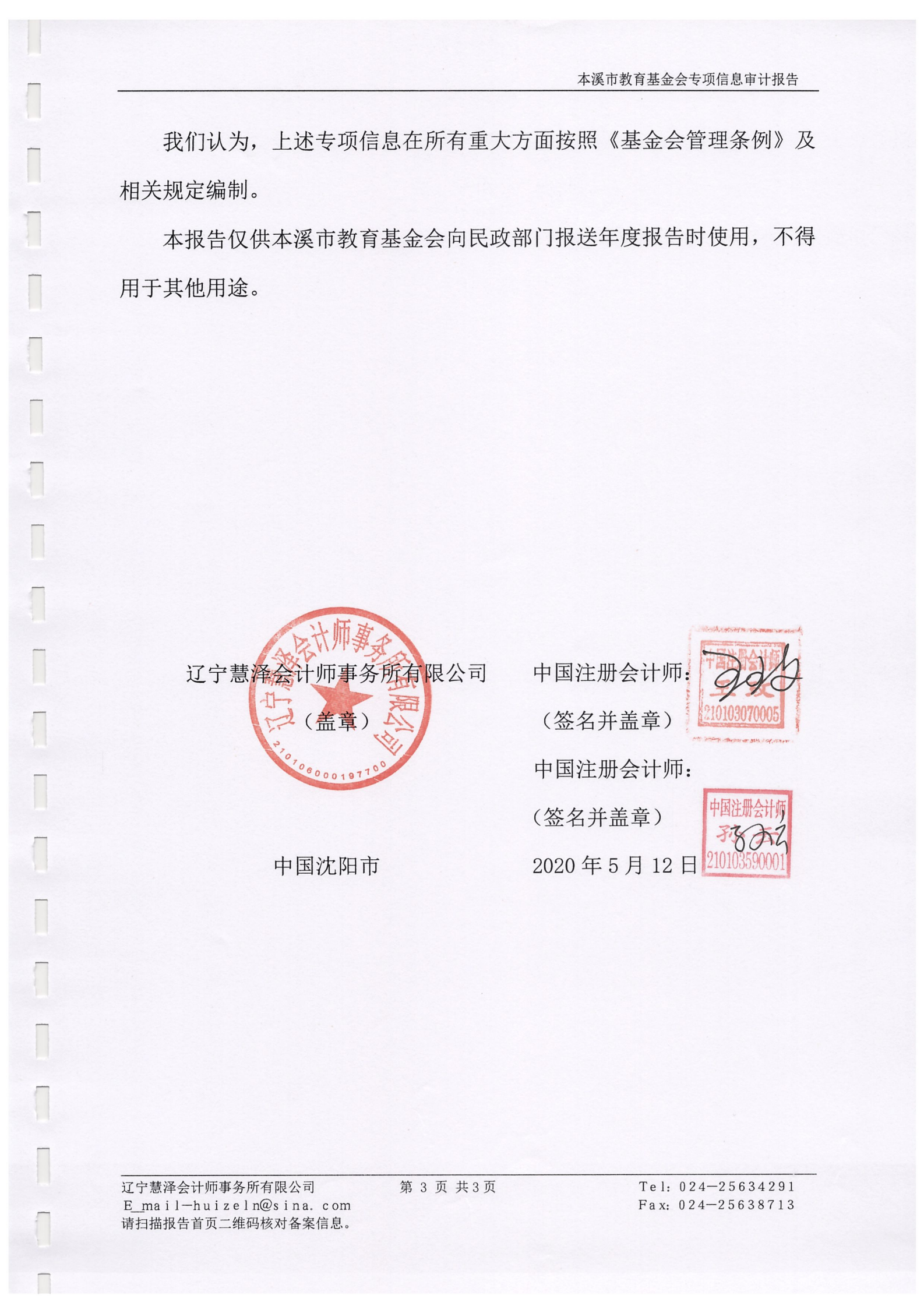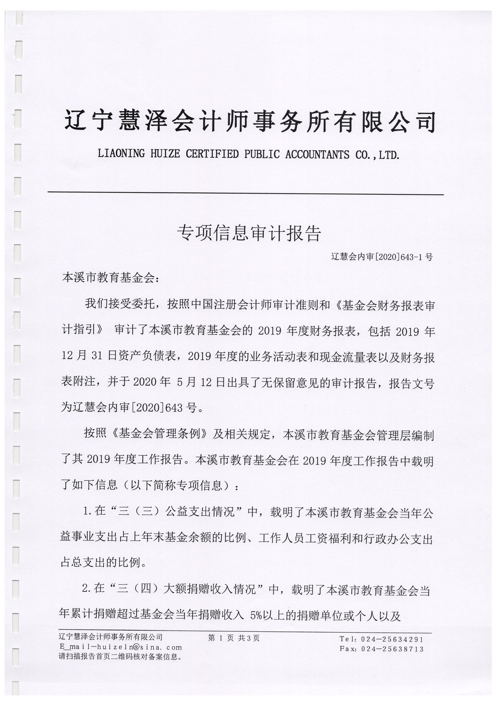 2019年本溪市教育基金会专项信息审计报告